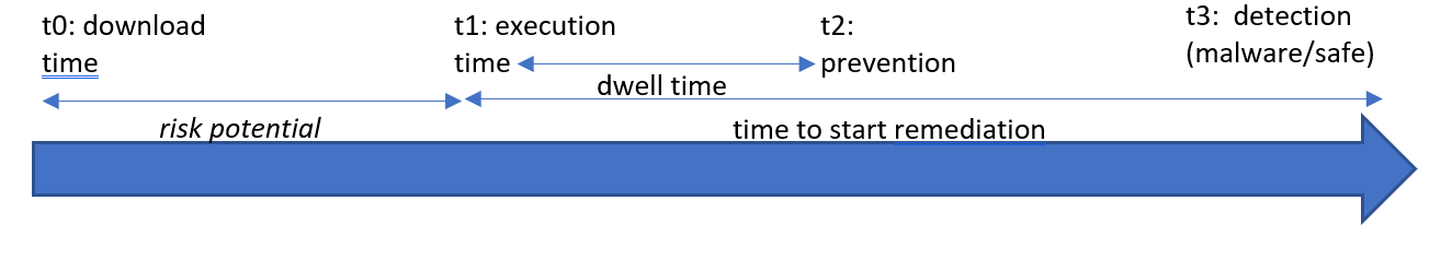 - Dwell Time: time a file enters the system until classification (clean or malicious) must have